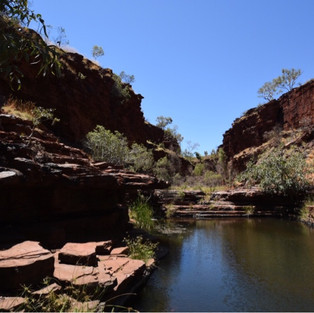 Am nächsten Tag fuhren zur Dales Gorge. Zuerst sind wir zum Fern Pool gelaufen. Zur Abkühlung gingen wir schwimmen. Danach liefen wir zurück zu den Fortescue Falls und von da durch die Schlucht zum Circular Pool. Dies ist ein toller Walktrail. Unterwegs haben wir einen wunderschönen Goanna (grosse Echse) gesehen.