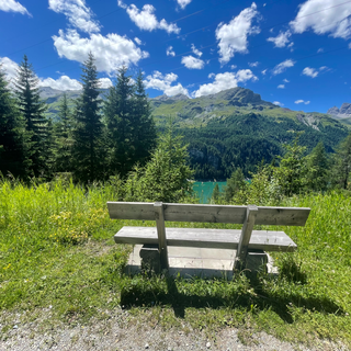 An einem sonnigen Samstag fuhren wir nach Marmorera um die Wanderung um den Stausee zu machen. Nach einem Kaffestopp im Restaurant direkt am See liefen wir los. Die Wanderung startete mit einem steilen Anstieg durch den Wald, danach ging es gemütlich über Weiden und Blumenwiesen. Bei einer Kuhherde haben wir Bekanntschaft gemacht einem Geissbock. das war äusserst lustig und unterhaltsam.
